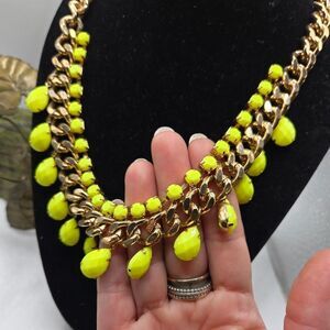 "5/$25" Neon Yellow Adjustable Goldtone Statement Bib Necklace