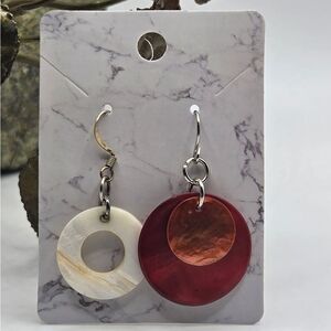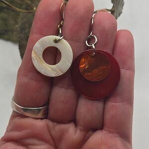 "5/$25" Pair of Mismatched Silvertone Round Shell Dangle Earrings