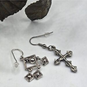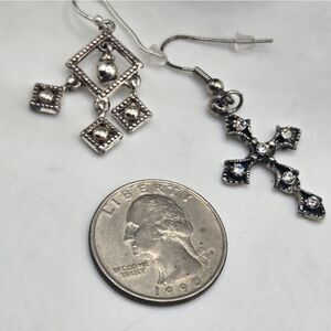 "5/$25" Pair of Silvertone Mismatched Cross Dangle Earrings
