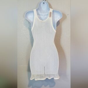 💚5/$25 Pendeed White Mesh Open Weave Cotton Knit Tank Top Mini Dress Dancewear