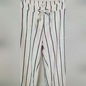 💚5/$25 Per Se Linen Blend Striped Cream & Navy Wide Leg Casual Pants Size Small