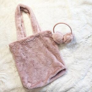 🔮 5/$25 Pink Faux Fur Tote With Matching Ear Muffs