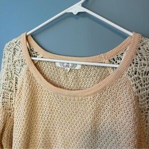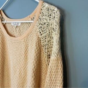 🔹5/$25🔹 Pink Rose Long Sleeve Pullover Crochet Peach Sweater. Women’s Large