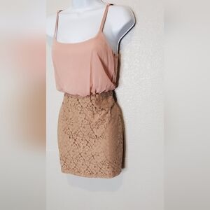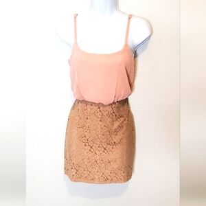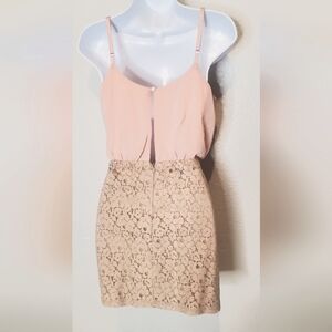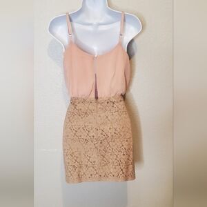 💚5/$25 Poetry Combo Elegant Cream Beige Lace & Pink Chiffon Mini Dress Sz Small