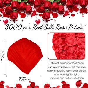 Super Value Pack: The rose petals for romantic night for her set has 3000 pcs red silk rose petals in total. Each rose petal measures 2" x 2"/5cm x 5cm that the size is similar to the real rose petals. Sufficient number of rose petals enough for you to decorate your home and make surprises for your loved one.