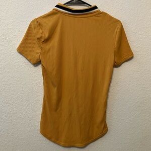 Mustard yellow o-ring zipper ribbed top