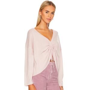 525 Ruched Front Cashmere Pullover in Rose Pink Size Medium / Large