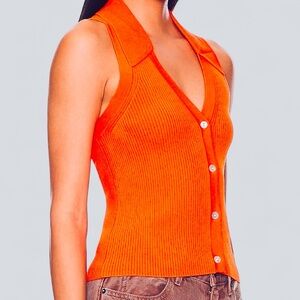 525 | Rue Sophie Rib Sweater | Halter Polo | Sleeveless | Papaya | Women’s L