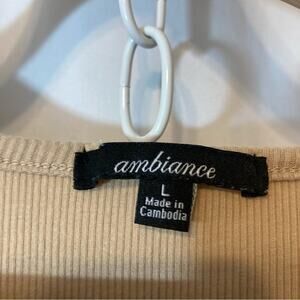 ❤️5/$25 SALE Ambiance Tan Light Brown Ribbed Lined Short Sleeve Scoop Crop Top