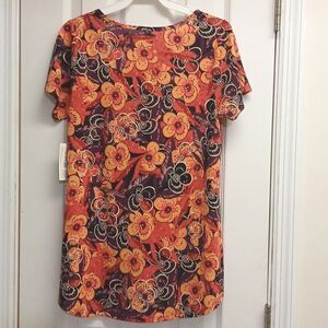 ⭐️5/$25 SALE LuLa Roe F loral Orange and Black Women's Top "Classic T" XS NWT