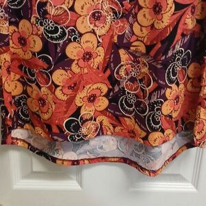 This vibrant floral top features a stunning orange, maroon, tan, and gold design, perfect for adding a pop of color to your wardrobe. Ideal for casual outings or dressing up for a night out.