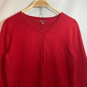 Merona Red Cotton Knit Long Sleeve Button Lightweight Cardigan Sweater