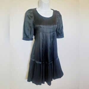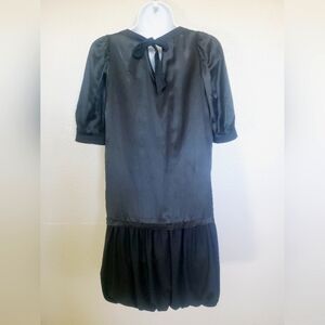💚5/$25 SILK Blend Black Bubble Hem Mini Dress Tied Neck Size Small