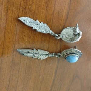 New with tag vintage style faux turquoise post earrings with dangling antiqued silver tone feathers. Measure about 2.5" long.