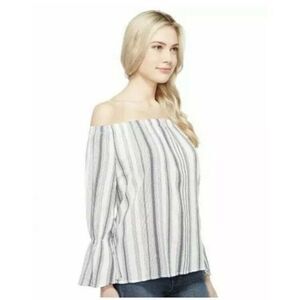 SANCTUARY Charlotte Off Shoulder Top Stripes White & Blue Top Blouse SIZE SMALL. Condition is New with tags.