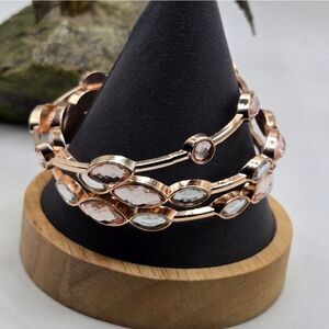 "5/$25" Set Of 3 Rose Goldtone Rhinestone Bangle Bracelets Sz 7.5