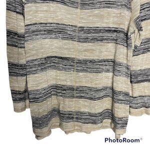 5/$25 Signature Studio Black Tan Striped Knit Scoop Neck Long Sleeve Sweater 1X