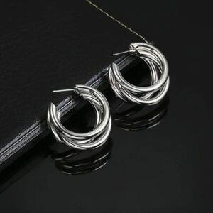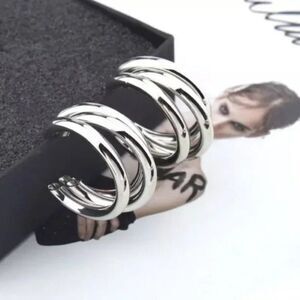 5/$25 Silver Color Triple Hoop Statement Earrings