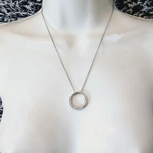 💚5/$25 Silver Toned Cubic Zirconia Circle Pendant Necklace