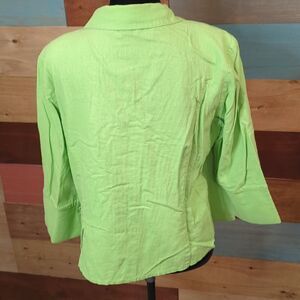 size 16 linen blend button-down blouse with shoulder pads 3/4 sleeves