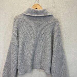 525 Slouchy Cropped Turtleneck Sweater Womens XL Gray Knit Fuzzy Oversized Beach