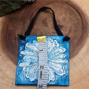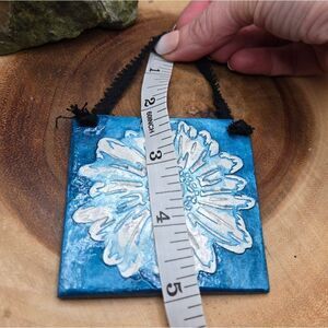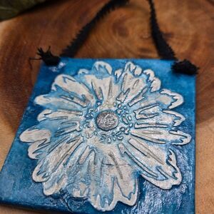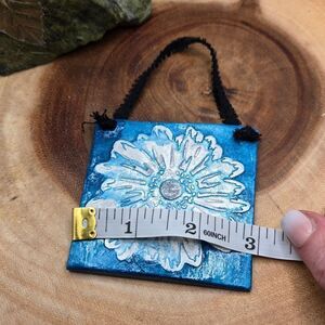 "5/$25" Small Handmade Clay Blue Watercolor Flower Hanging Art Tile 3x3"
