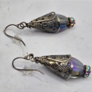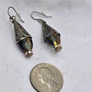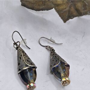 "5/$25" Smokey Purple AB Crystal Silvertone Brutalist Dangle Earrings