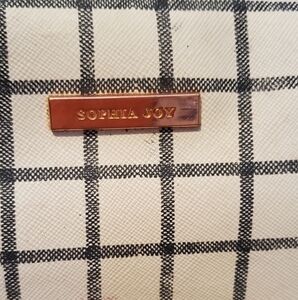 This Sophia Joy cosmetic bag showcases a chic cream and black design, perfect for organizing your essentials. Its minimalist aesthetic and durable construction make it a stylish and practical choice for everyday use.