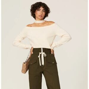 525 Sweater Womens Medium Cream Choker Cutout Halter Neck Knit Off Shoulder