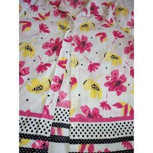 5/$25 Sz 16P Blouse Womens Colorful Floral Button Up Shirt Top Polka Dots