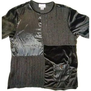 5/$25 Sz L Velvet Crochet Satin Color Block Crewneck Pullover Tunic Pocket