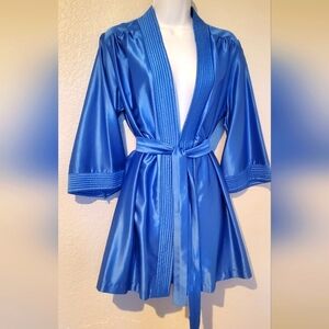 💚5/$25 That Look Blue Satin Nylon Belted Short Robe With Pockets Size Small