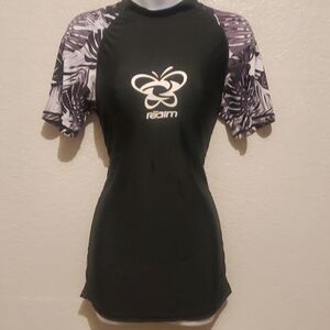 💚5/$25 The Realm Black Rash Guard Swim Surf Shirt Fitted Ruched PSize Medium