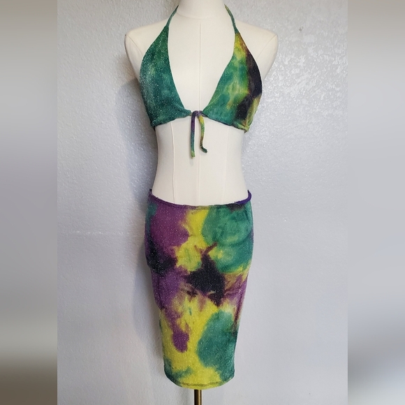 💚5/$25 Tie-Dye 2 Piece Triange Halter Top & Matching Skirt Set Size Medium