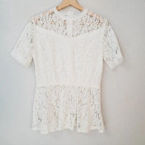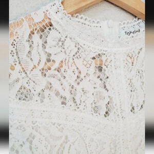 💚5/$25 Tobrief White LaceMock Neck Shell Top Size Small Crochet