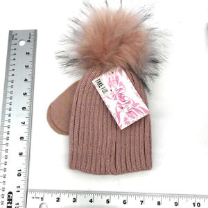 Mauve Rose Gold Metallic Toddler hat with Fuzzy Pom Poms and mittens