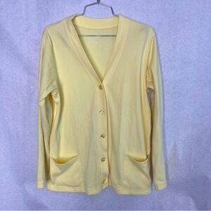 5/$25 Ultra softs yellow button up cardigan pocket size medium cotton