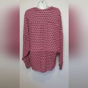 💚5/$25 Vince Camuto Red Oversized Draped Hi Lo Long Sleeve Blouse Size Medium