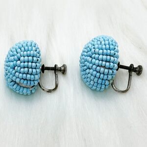 🔮 5/$25 Vintage 1970s Bohemian Turquoise Beaded Screw Back Earrings