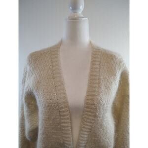 525 Vintage Cream Mohair Blend 3 Button Cardigan Sweater OSFA Tiny Flaw,