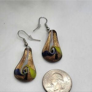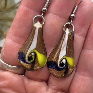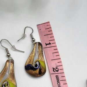 "5/$25" Vintage Dichroic Art Glass Gold Foil Dangle Earrings