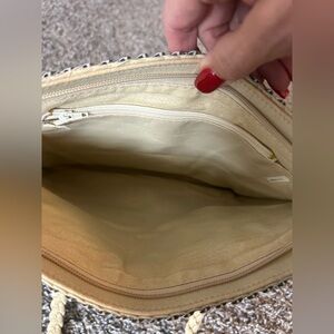 Pre-owned and in good condition. Vintage ivory chain mail purse with braided shoulder straps and gold accent hardware.