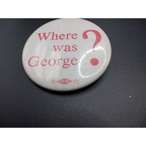 Show your political support with this vintage 80's \"Where Was George\" President 2.25\" Democrat Button Union Labror Pin. The pin features a patriotic design and measures 2.25 inches. Whether you're a collector or want to show your political affiliation, this pin is a must-have.