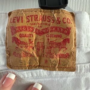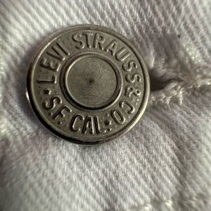 5/$25 Women's White Levi Jeans 32/34- Distressed with small pink spot- see pics
