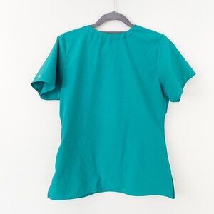 5/$25 WonderWink W123 v-neck teal dual pocket fitted stretch scrub top - Small