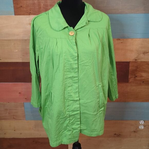 💜5/$25 XL green blouse with pockets and hidden buttons. Jennifer Lauren