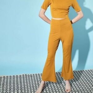 Elevate your style with these chic mustard flared pants. Perfect for any occasion, these pants offer both comfort and elegance.