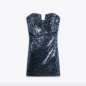 (🌹5/$25 🌹) Zara SHORT SEQUIN DRESS Leopard (nwt) Size Small