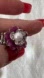 💐5/25 faux Pearl large flower purple enamel large bling statement ring stretch