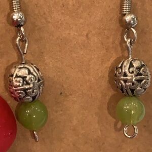 ๐Ÿ’5/25 jade glass stone silver bead dangle dainty